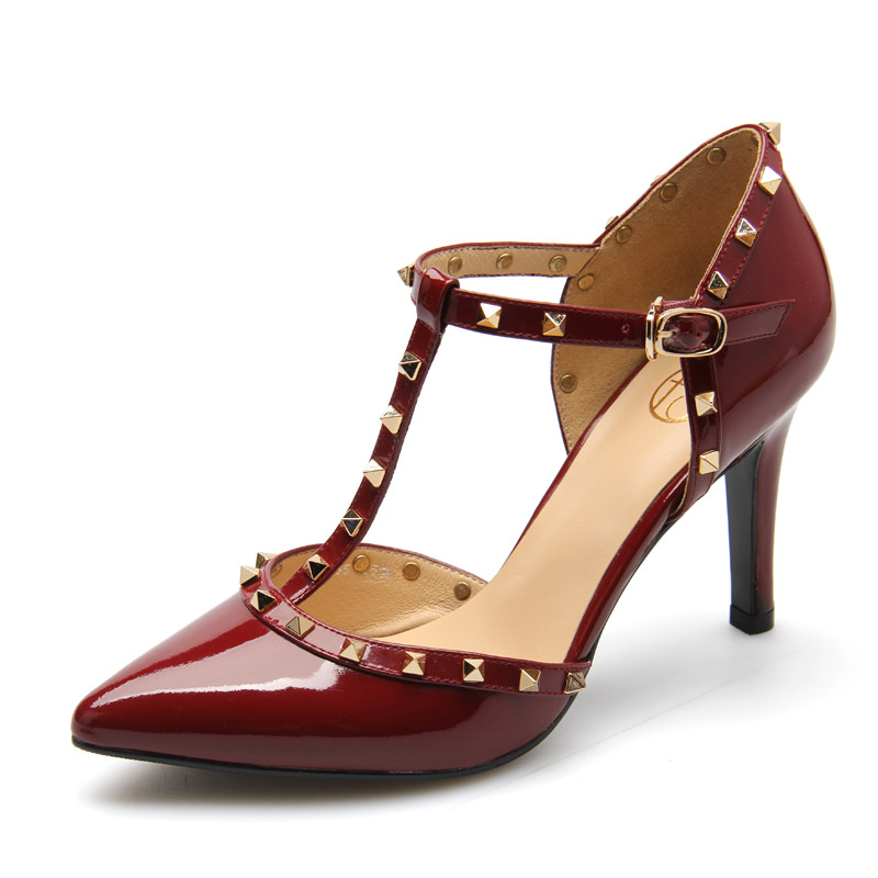 莱尔斯丹 2017春新款复古粗跟圆头中跟高跟鞋女鞋通勤单鞋8M43701