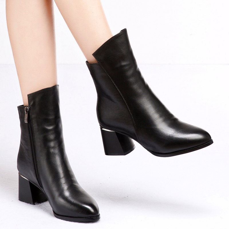 topgloria/汤普葛罗舒适秋冬新款圆头女靴 舒适粗高跟短靴110360H 冬靴特价清仓2件9折,下单送后跟帖